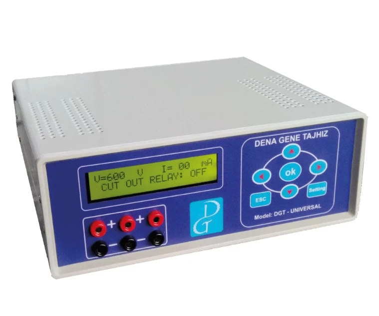 The DGT-UNIVERSAL Electrophoresis Power Supply from Denagne Tajhiz is a highly accurate, versatile, and reliable laboratory instrument, designed to meet the requirements of molecular biology, biochemistry, and clinical research laboratories. Its advanced design, precise output settings, and energy efficiency allow researchers to perform a wide range of electrophoresis experiments with confidence, from routine analyses to complex molecular assays.