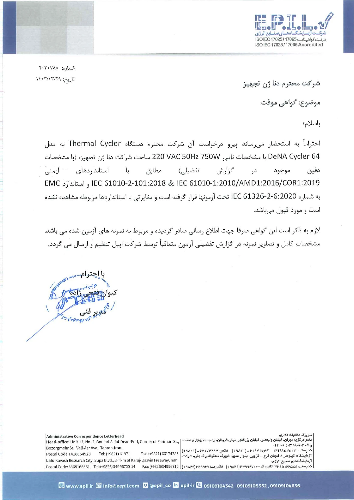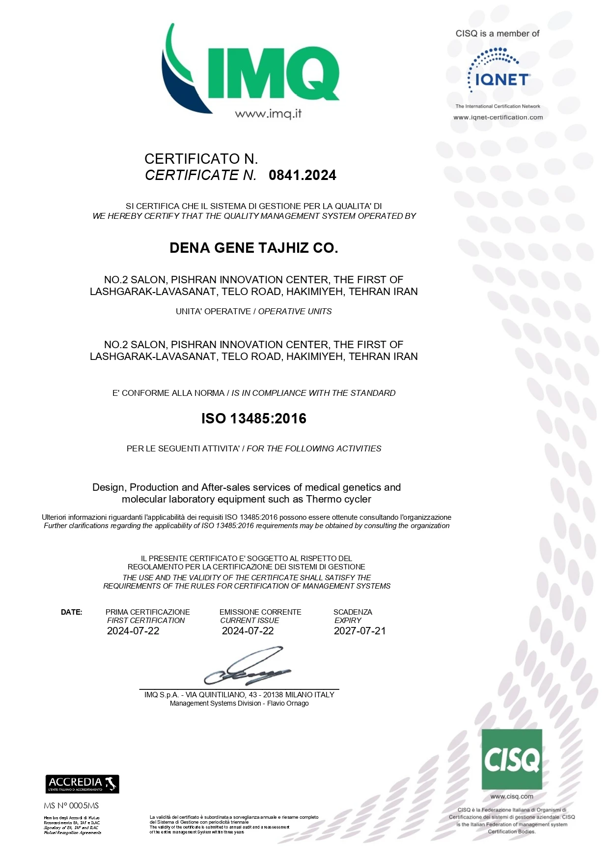 شرکت دناژن تجهیز به عنوان یکی از پیشگامان طراحی و تولید تجهیزات آزمایشگاهی، همواره در مسیر نوآوری و ارتقای کیفیت گام برداشته است. دریافت گواهینامههای معتبر ملی و بینالمللی، بیانگر پایبندی ما به استانداردهای جهانی، دقت در فرآیند تولید و تعهد به رضایت مشتریان است. این افتخارات نشان میدهد که محصولات ما نهتنها از نظر فنی و کیفی در بالاترین سطح قرار دارند، بلکه قابلیت رقابت در بازارهای جهانی را نیز دارا هستند.