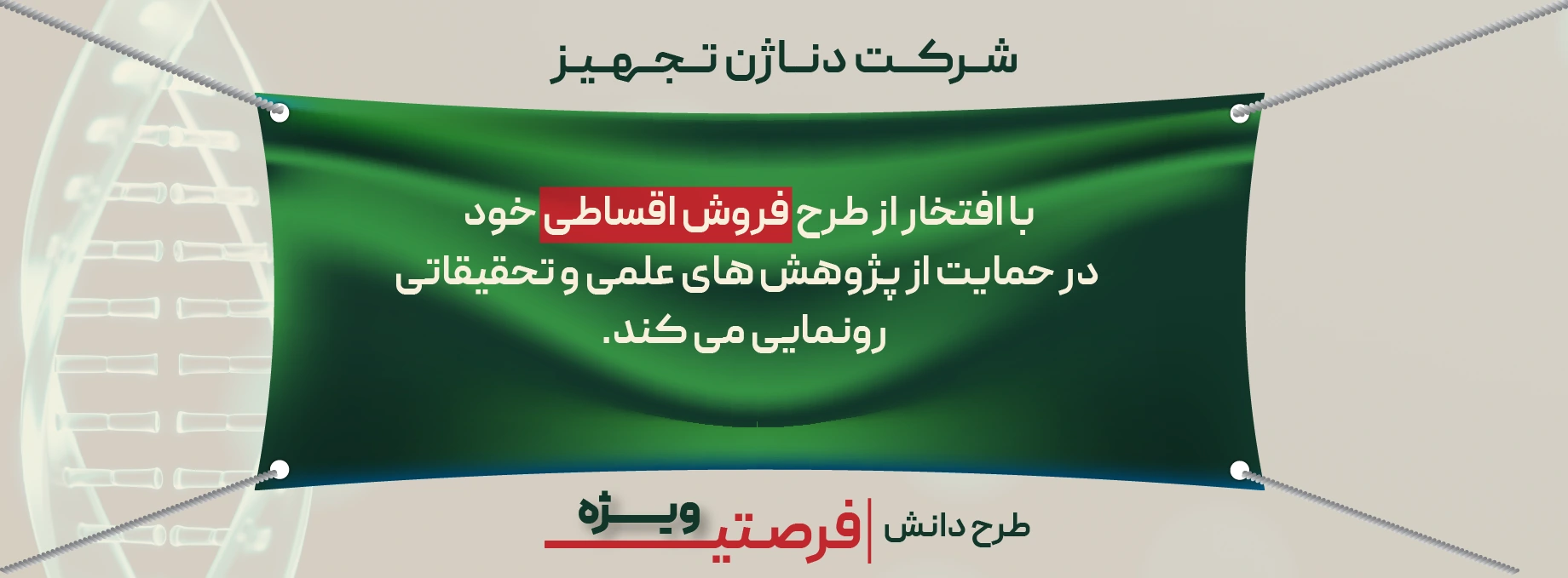 بهمنظور پاسخگویی به این تقاضا و تسهیل فرآیند خرید برای مشتریان گرامی، شرکت دناژن تجهیز طرح "دانش" را ارائه میکند. در این طرح، محصولات ما با شرایط خرید اقساطی در اختیار مشتریان قرار میگیرد. حداقل مبلغ خرید در این طرح 150 میلیون تومان است و اقساط خرید در دورهای 6 ماهه قابل پرداخت میباشد.